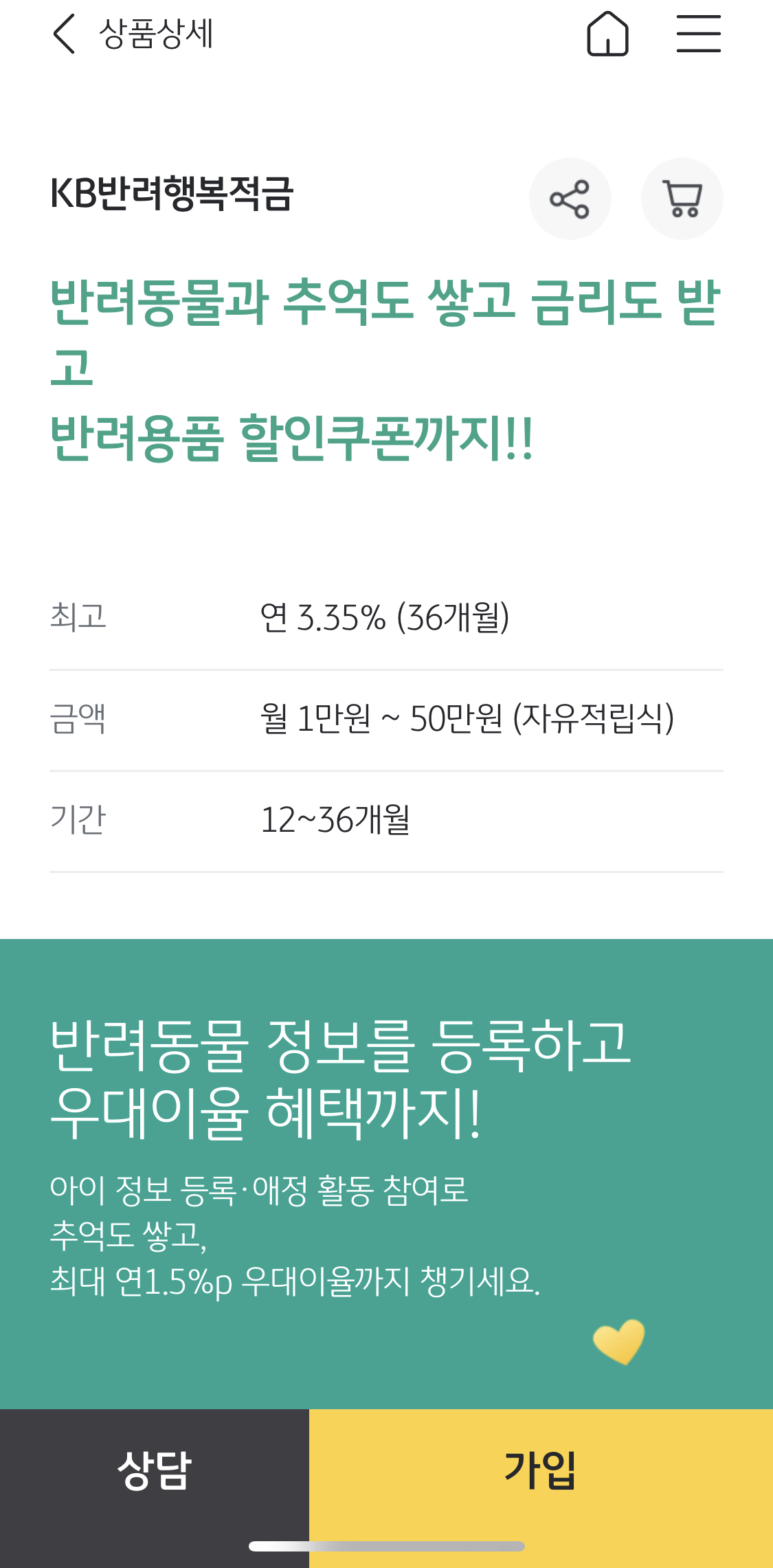 적금을 알아보다가 반려적금을 알게되었어요.
