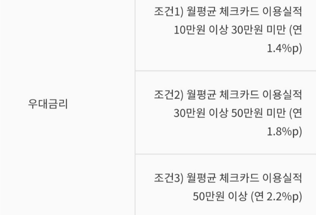 그리고 우대금리를 받기 위해서는 조건에 충족해야됩니다.