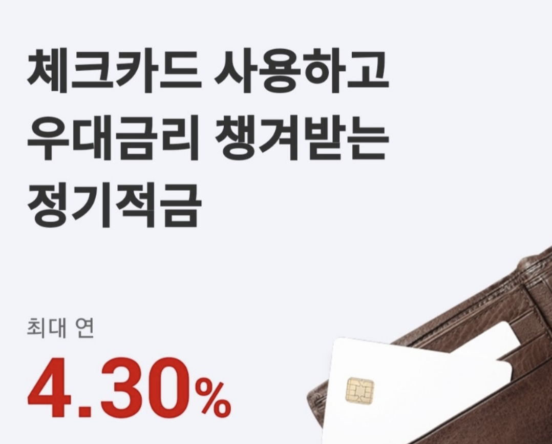체크카드 실적이 10만원만 되어도!! 총 3.5%의 금리를 적용 가능합니다👍