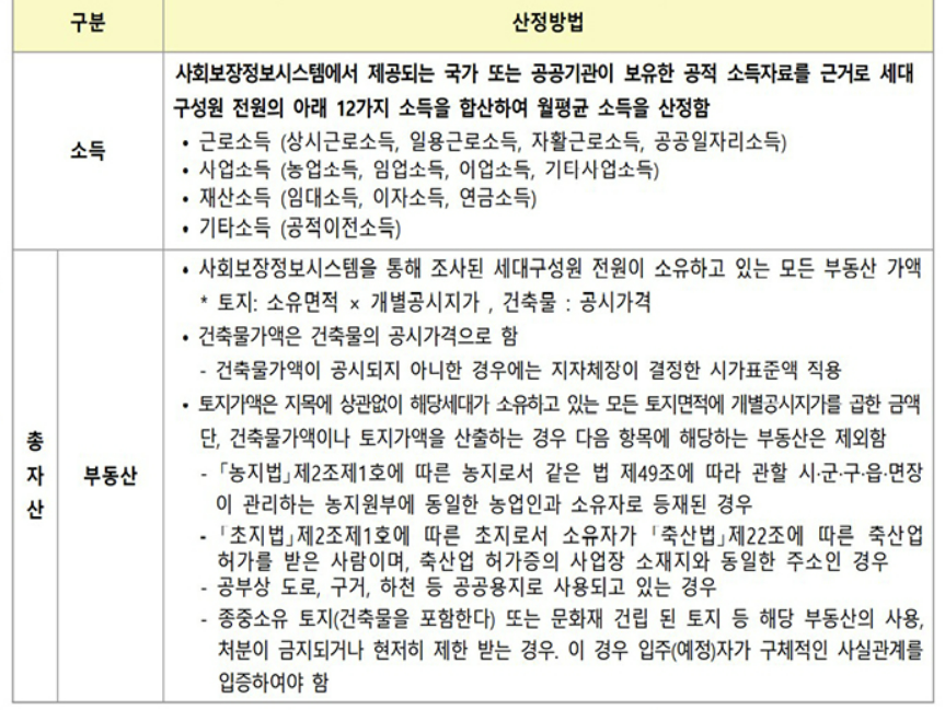 우선 소득 및 자산보유 충족 기준 알아봅시다.