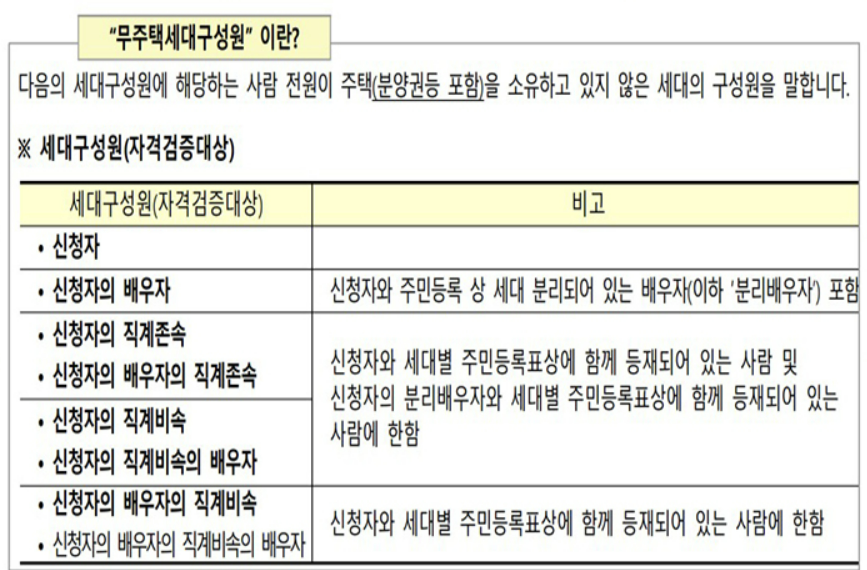 무주택 세대 구성원에 대해 아래표에서 한번 확인해볼 수 있습니다.