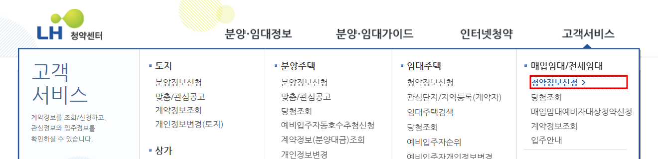 [청약정보신청-> 로그인 -> 관심 분양(청약) 정보 설정]