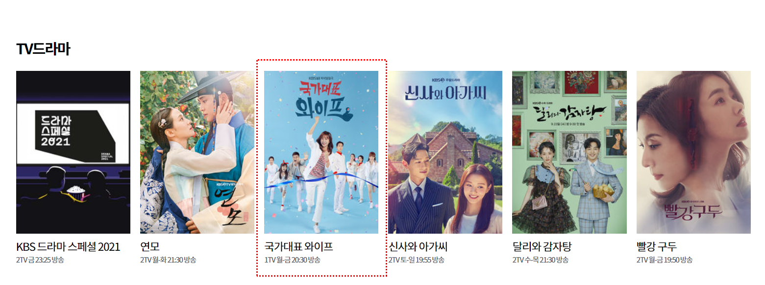 KBS 드라마 공식 사이트 - 드라마 - 아래로 스크롤 하시면 인기 있는 종영 드라마 배너가 보입니다.